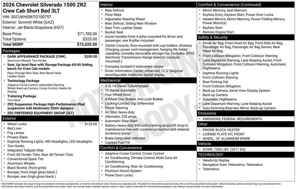 - Warranty: <<< Preliminary 2026 Warranty >>>