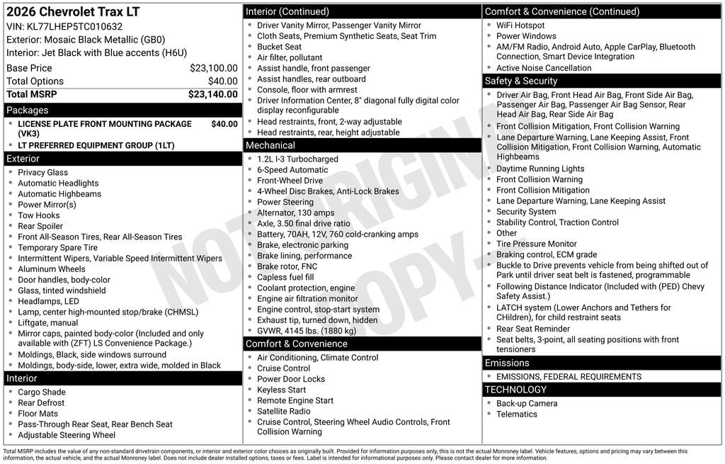 Representing the optimal blend of tarmac tearing performance and silky smooth highway refinement. A turbocharger is also included as an economical means of increasing performance. Top features include cruise control, telescoping steering wheel, rear wipers, and remote keyless entry. It features a front-wheel-drive platform, an automatic transmission, and an efficient 3 cylinder engine.