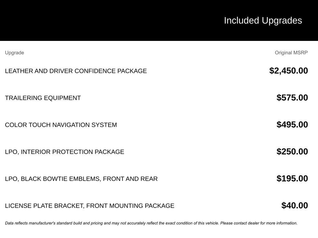 - Turn-by-turn nav : OnStar Turn-by-Turn Navigation