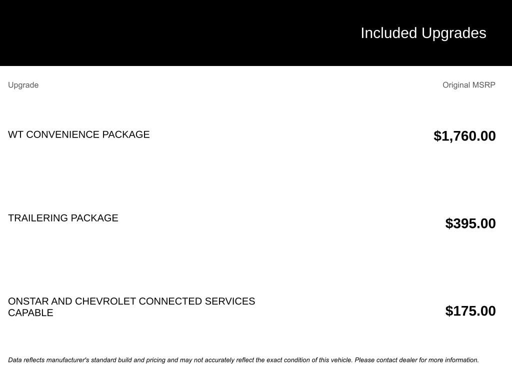 - Internet access : Chevrolet 4G LTE mobile hotspot internet access