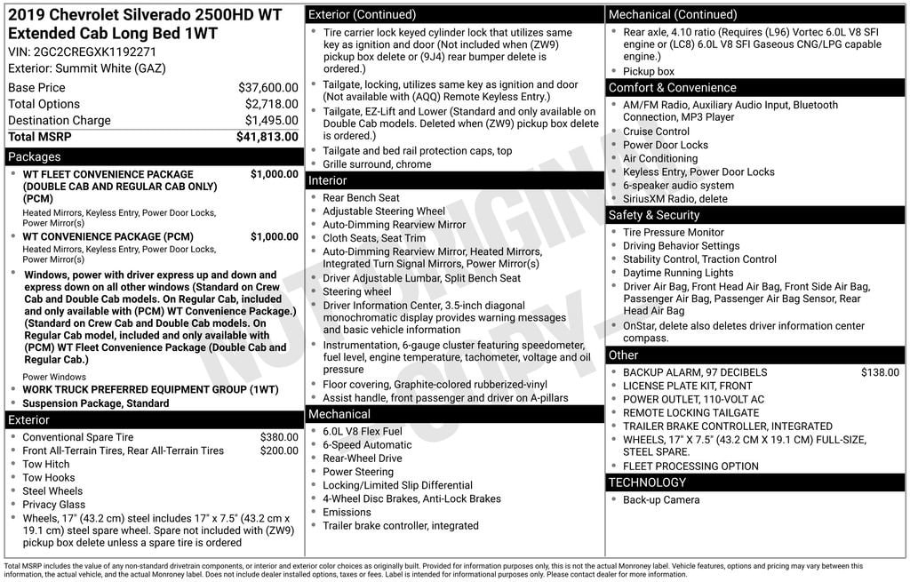 Beyond its impressive capabilities, the 2019 Silverado 2500HD Work Truck is packed with features that make your driving experience more comfortable and convenient. Enjoy the benefits of remote keyless entry, power windows, and an integrated trailer brake controller. Stay connected with the Chevrolet Infotainment System and its premium audio setup.