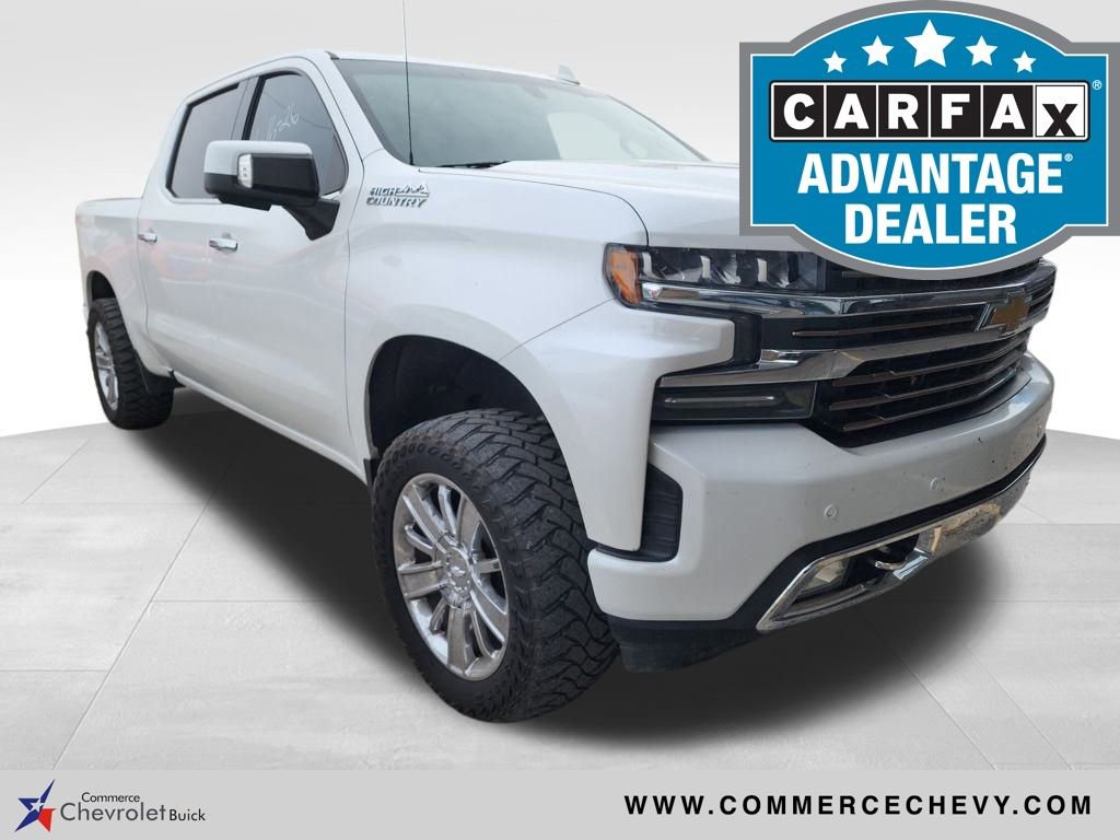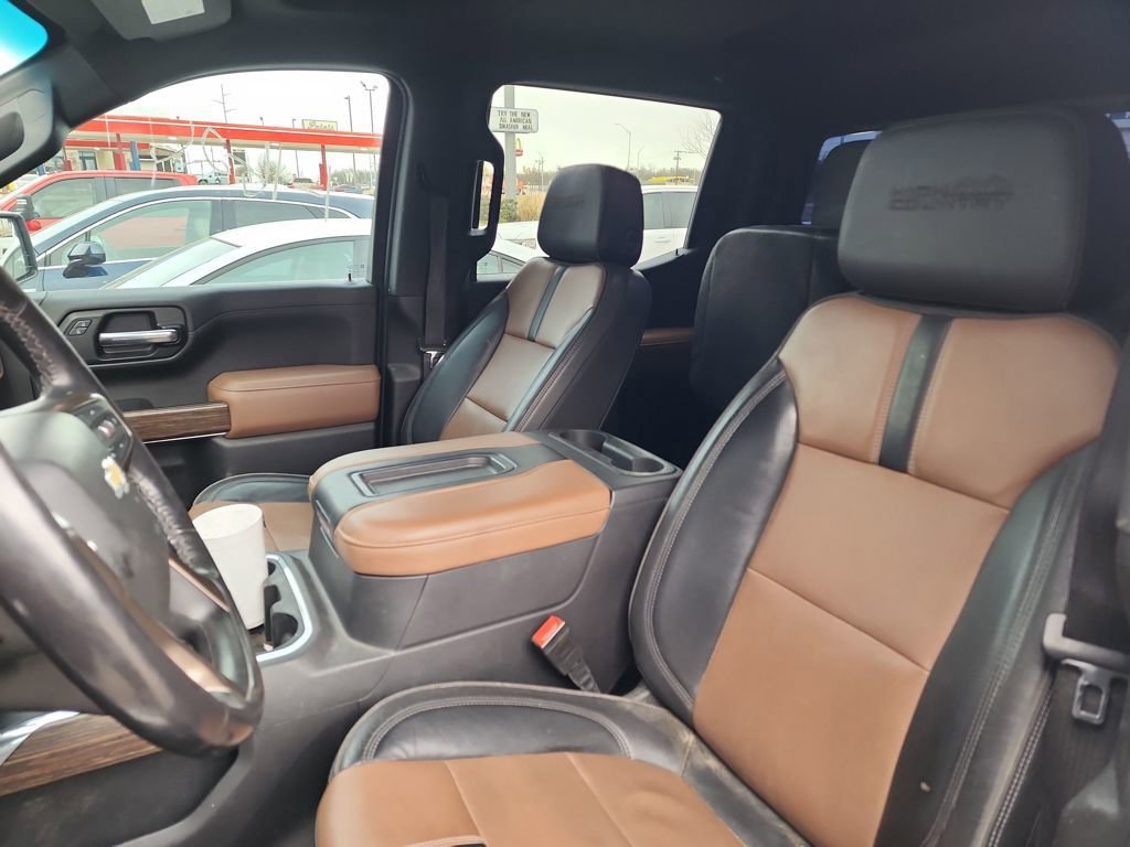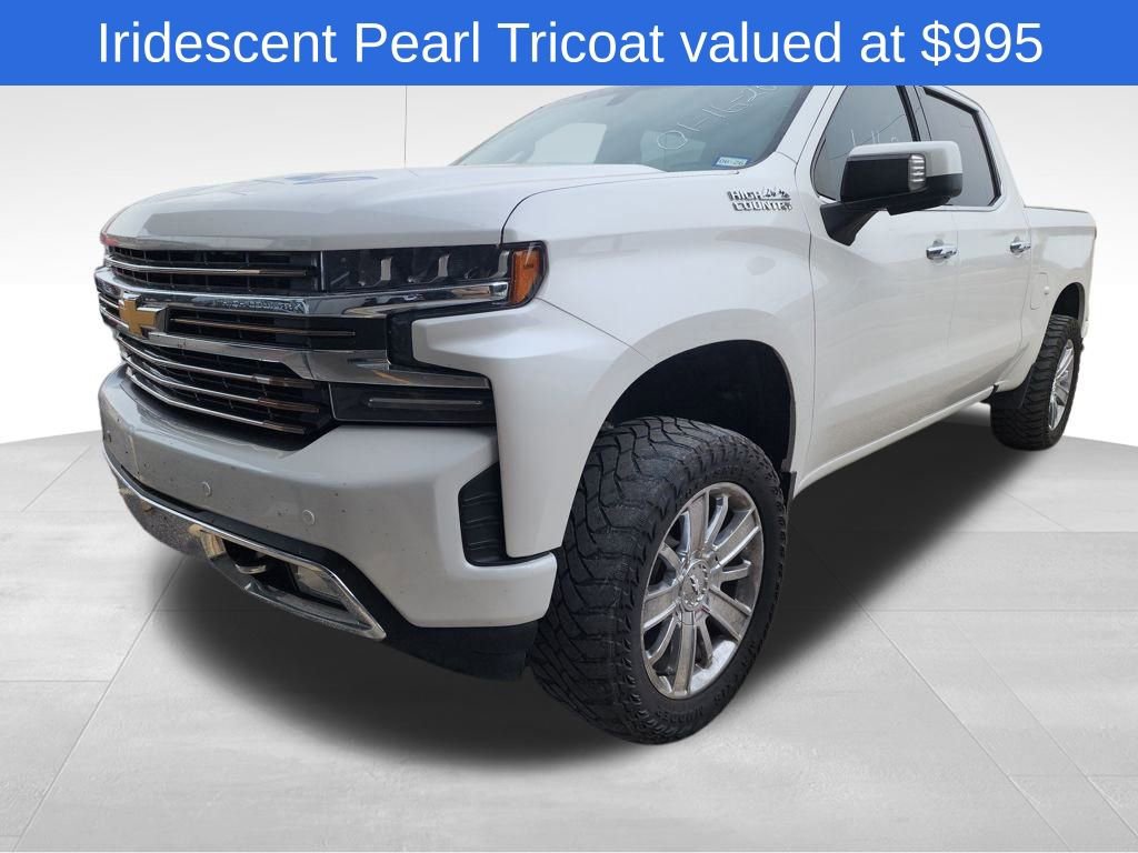 This 2020 Chevrolet Silverado 1500 High Country EcoTec3 5.3L V8 8-Speed Automatic RWD in Iridescent Pearl Tricoat comes with the following features: 8-Speed Automatic and Jet Black/Umber Leather Preferred Equipment Group 3LZ (10-Way Power Driver Seat w/Lumbar, 10-Way Power Passenger Seat Adjuster w/Lumbar, 12-Volt Rear Auxiliary Power Outlet, 120-Volt Bed Mounted Power Outlet, 120-Volt Instrument Panel Power Outlet, 2nd Row Heated Outboard Seats, 4G LTE Wi-Fi Hot Spot Capable, 8 Driver Information Center, Advanced Trailering System, Auto-Dimming Inside Rear-View Mirror, Auxiliary External Transmission Oil Cooler, Bluetooth® For Phone, Chevrolet Connected Access Capable, Chevytec Spray-On Black Bedliner, Chrome Assist Steps, Chrome Grille, Chrome Recovery Hooks, Color-Keyed Carpeting Floor Covering, Compass, Deep-Tinted Glass, Driver Memory, Dual Exhaust w/Polished Outlets, Electric Rear-Window Defogger, Electrical Lock Control Steering Column, Floor Mounted Center Console, Front Carpeted Floor Mats, Front LED Fog Lamps, HD Radio, HD Rear Vision Camera, Heated Driver & Front Outboard Passenger Seats, Heated Steering Wheel, Heavy-Duty Rear Locking Differential, Hitch Guidance, Hitch Guidance w/Hitch View, Integrated Trailer Brake Controller, Keyless Open & Start, Lane Change Alert w/Side Blind Zone Alert, Leather Wrapped Steering Wheel, LED Cargo Area Lighting, Manual Tilt/Telescoping Steering Column, OnStar & Chevrolet Connected Services Capable, Outside Heated Power-Adjustable Mirrors, Painted Mirror Caps, Power Door Locks, Power Front Passenger Windows w/Express Up/Down, Power Front Windows w/Driver Express Up/Down, Power Rear Windows w/Express Down, Power Sliding Rear Window w/Rear Defogger, Rear Carpeted Floor Mats, Rear Cross Traffic Alert, Rear Dual USB Charging-Only Ports, Rear Wheelhouse Liners, Remote Vehicle Starter System, SiriusXM w/360L, Steering Wheel Audio Controls, Steering Wheel Mounted Electronic Cruise Control, Theft Deterrent System (Unauthorized Entry), Ultrasonic Front & Rear Park Assist, Universal Home Remote, Ventilated Driver & Front Passenger Seats, and Wireless Charging), Trailering Package, Up-Level Rear Seat w/Storage Package, 8-Speed Automatic, Jet Black/Umber Leather, 170 Amps Alternator, 3.23 Rear Axle Ratio, 4-Wheel Disc Brakes, 7 Speakers, ABS brakes, Air Conditioning, Alloy wheels, AM/FM radio: SiriusXM with 360L, Apple CarPlay/Android Auto, Auto-dimming door mirrors, Auto-dimming Rear-View mirror, Automatic temperature control, Brake assist, Bumpers: body-color, Delay-off headlights, Driver door bin, Driver vanity mirror, Dual front impact airbags, Dual front side impact airbags, Electronic Stability Control, Front anti-roll bar, Front Bucket Seats, Front Center Armrest, Front dual zone A/C, Front fog lights, Front License Plate Kit, Front reading lights, Front wheel independent suspension, Fully automatic headlights, Garage door transmitter, Heated door mirrors, Heated front seats, Heated rear seats, Heated steering wheel, Heavy Duty Suspension, Illuminated entry, Low tire pressure warning, Memory seat, Navigation System, Occupant sensing airbag, Outside temperature display, Overhead airbag, Overhead console, Panic alarm, Passenger door bin, Passenger vanity mirror, Perforated Leather-Appointed Seat Trim, Power door mirrors, Power driver seat, Power passenger seat, Power steering, Power windows, Premium audio system: Chevrolet Infotainment 3 Premium, Radio data system, Radio: Chevrolet Infotainment 3 Premium System, Rear reading lights, Rear seat center armrest, Rear step bumper, Rear window defroster, Remote keyless entry, Security system, Speed control, Speed-sensing steering, Sp