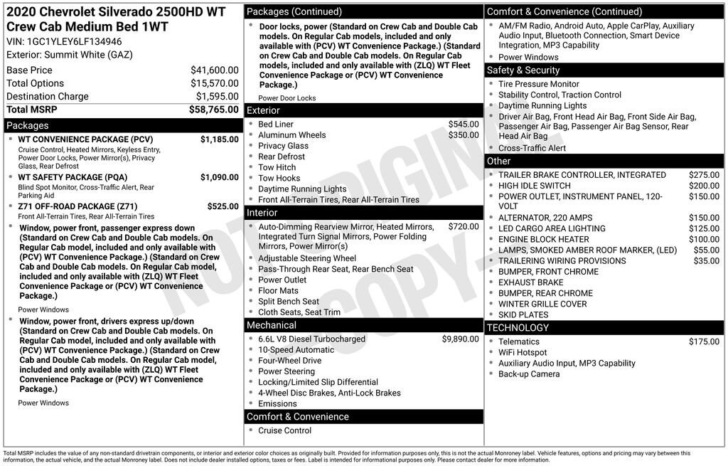 We are a family owned and operated business. We look forward to serving all your automotive needs, sales, service, parts, and body shop. When it comes to your automotive needs, Commerce Chevrolet has you covered. Contact us today! 903-886-2188.This 2020 Chevrolet Silverado 2500HD Work Truck Duramax 6.6L V8 Turbodiesel 10-Speed Automatic 4WD in Summit White comes with the following features: 10-Speed Automatic, 4WD, and Black Cloth Preferred Equipment Group 1WT (170 Amp Alternator, 2-Speed Electronic Shift Transfer Case, 3.5 Diagonal Monochromatic Display DIC, Black Front Bumper, Black Front Grille, Black Mirror Caps, Black Rear Bumper, Bluetooth® For Phone, High-Visibility Vertical Trailering Mirrors, Locking Tailgate, Manual Tailgate Function w/No EZ Lift, Manual Tilt-Wheel Steering Column, Power Rear Windows w/Express Down, Rear 60/40 Folding Bench Seat (Folds Up), Rubberized-Vinyl Floor Covering, and Solar Absorbing Tinted Glass), Suspension Package, WT Convenience Package (Deep-Tinted Glass, Electric Rear-Window Defogger, Electronic Cruise Control w/Set & Resume Speed, Manual Tailgate Function w/EZ Lift, and Remote Keyless Entry), WT Safety Package (Chrome Front Bumper, Chrome Rear Bumper, Lane Change Alert w/Side Blind Zone Alert, Rear Cross Traffic Alert, and Ultrasonic Front & Rear Park Assist), Z71 Off-Road Package (Hill Descent Control and Off-Road Suspension), 10-Speed Automatic, 4WD, Black Cloth, 120-Volt Bed Mounted Power Outlet, 120-Volt Instrument Panel Power Outlet, 17 Machined Aluminum Wheels, 220 Amp Alternator, 4-Wheel Disc Brakes, 4G LTE Wi-Fi Hotspot Capable, 5th Wheel & Gooseneck Trailer Wiring Provisions, 6 Speakers, 6-Speaker Audio System, 720 Cold-Cranking Amps Heavy-Duty Battery, ABS brakes, Air Conditioning, AM/FM radio, Apple CarPlay/Android Auto, Auto-Dimming Inside Rear-View Mirror, Black Chevytec Spray-On Bedliner w/Chevrolet Logo, Brake assist, Chevrolet Connected Access Capable, Compass, Delay-off headlights, Driver door bin, Dual front impact airbags, Dual front side impact airbags, Electronic Stability Control, Engine Block Heater, Exhaust Brake, Exterior Parking Camera Rear, Front 40/20/40 Split-Bench Seat w/No Storage, Front anti-roll bar, Front Center Armrest, Front License Plate Kit, Front reading lights, Front wheel independent suspension, Fully automatic headlights, Heated & Auto-Dimming Vertical Trailering Mirrors, High Idle Switch, Integrated Trailer Brake Controller, LED Cargo Area Lighting, LED Smoked Amber Roof Marker Lamps, Low tire pressure warning, Occupant sensing airbag, OnStar & Chevrolet Connected Services Capable, Outside temperature display, Overhead airbag, Overhead console, Passenger door bin, Passenger vanity mirror, Power steering, Power windows, Premium audio system: Chevrolet Infotainment 3, Radio: Chevrolet Infotainment 3 System, Rear reading lights, Rear step bumper, Split folding rear seat, Tachometer, Tilt steering wheel, Traction control, Trip computer, Variably intermittent wipers, Vinyl Seat Trim, Voltmeter, Wheels: 17 Silver Painted Steel, and Winter Grille Cover.