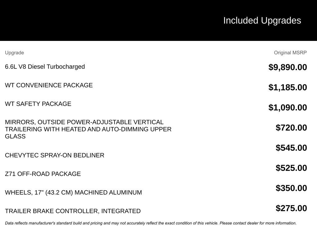 - Engine: 6.6L V8 DuraMax Diesel, Turbo