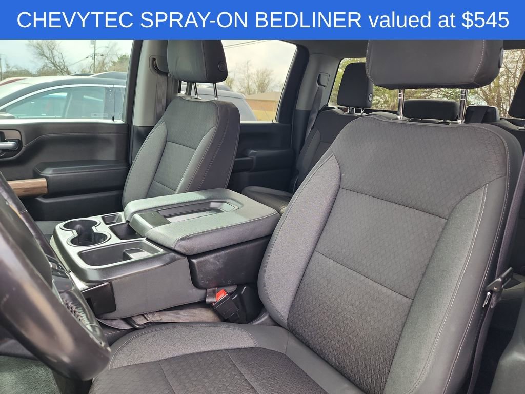 The exterior of this Silverado is equally impressive, with a bold, rugged design that commands attention. The black Chevytec spray-on bedliner and chrome accents give the truck a premium look, while the 18-inch machined aluminum wheels with silver painted accents add a touch of style.
