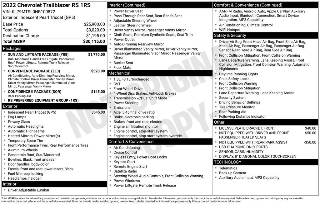 Whether you're tackling the daily commute or embarking on a weekend adventure, the 2022 Chevrolet TrailBlazer RS is the perfect companion. Experience the perfect blend of style, capability, and technology that this exceptional crossover has to offer. Visit our showroom today and let us demonstrate why the TrailBlazer RS should be your next vehicle.