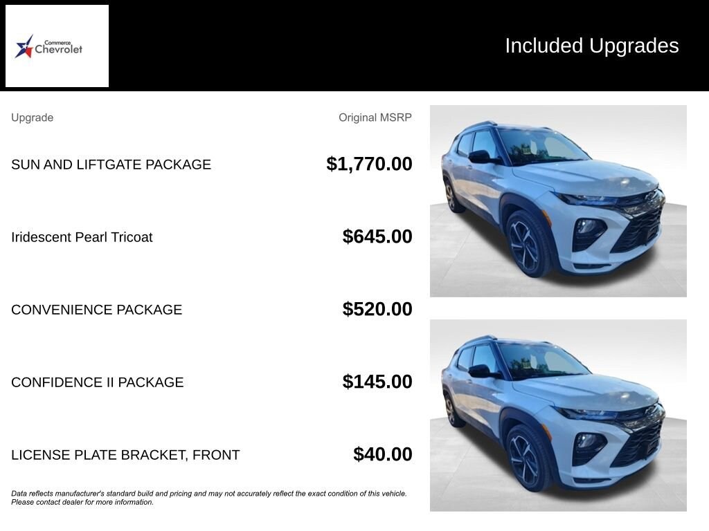 Comfort and convenience are paramount in the TrailBlazer RS. Enjoy the warmth of heated front seats and a heated steering wheel, perfect for those chilly mornings. The Hands-Free Power Programmable Liftgate makes loading and unloading a breeze, while the Rear Park Assist and Exterior Parking Camera Rear provide added peace of mind when maneuvering in tight spaces.