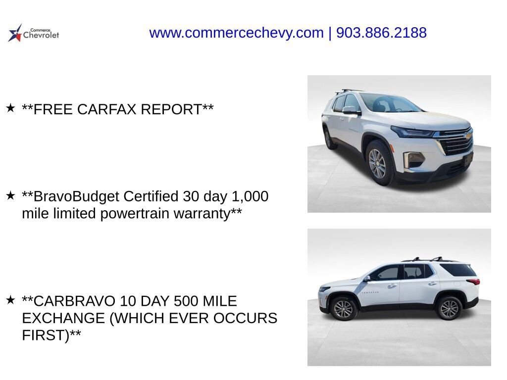 Discover the exceptional 2022 Chevrolet Traverse LT Leather, a versatile and well-equipped SUV that's ready to elevate your driving experience. With its stunning white exterior, bold design, and advanced features, this Traverse is poised to exceed your expectations.