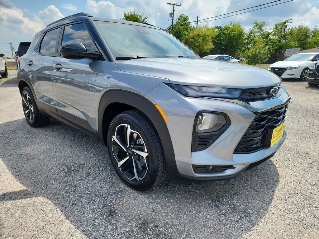 This 2023 Chevrolet TrailBlazer RS 1.3L Ecotec Turbo DOHC SIDI w/VVT CVT FWD in Sterling Gray Metallic comes with the following features: **CARFAX REPORT**, **CARBRAVO 10 DAY 500 MILE EXCHANGE (WHICH EVER OCCURS FIRST)**, and **CARBRAVO CERTIFIED 6 MONTH 6,000 MILE LIMITED BUMPER TO BUMPER WARRANTY** Convenience Package (1 Type-A & 1 Type-C USB Charging-Only Ports, 120-Volt Power Outlet, 8 Diagonal Color Touchscreen Display, Driver & Front Passenger Illuminated Vanity Mirrors, Inside Rear-View Auto-Dimming Mirror, and Single-Zone Auto Climate Control Air Conditioning), Driver Confidence Package (Lane Change Alert w/Side Blind Zone Alert, Rear Cross Traffic Alert, and Rear Park Assist), and Preferred Equipment Group 1RS (Heated Steering Wheel) Convenience Package (1 Type-A & 1 Type-C USB Charging-Only Ports, 120-Volt Power Outlet, 8 Diagonal Color Touchscreen Display, Driver & Front Passenger Illuminated Vanity Mirrors, Inside Rear-View Auto-Dimming Mirror, Single-Zone Auto Climate Control Air Conditioning, and Cabin Humidity Sensor), Driver Confidence Package (Lane Change Alert w/Side Blind Zone Alert, Rear Cross Traffic Alert, and Rear Park Assist), Preferred Equipment Group 1RS (Heated Steering Wheel), 2-Way Adjustable Front Head Restraints, 2-Way Power Driver Lumbar Seat Adjuster, 4-Way Manual Front Passenger Seat Adjuster, 4-Wheel Disc Brakes, 5.45 Axle Ratio, 6 Speakers, 6-Speaker Audio System Feature, 7 Diagonal Color Touchscreen, 8-Way Power Driver Seat Adjuster, ABS brakes, Air Conditioning, Alloy wheels, AM/FM radio: SiriusXM, Auto High-beam Headlights, Brake assist, Bumpers: body-color, Cloth w/Leatherette Seat Trim, Compass, Delay-off headlights, Driver door bin, Driver vanity mirror, Dual front impact airbags, Dual front side impact airbags, Electronic Stability Control, Emergency communication system: OnStar and Chevrolet connected services capable, Exterior Parking Camera Rear, Flat-Folding Front Passenger Seatback, Front anti-roll bar, Front Bucket Seats, Front Center Armrest, Front fog lights, Front License Plate Bracket, Front reading lights, Front wheel independent suspension, Fully automatic headlights, Heated door mirrors, Heated Driver & Front Passenger Seats, Heated front seats, Heated steering wheel, Illuminated entry, Knee airbag, Leather Shift Knob, Leather steering wheel, Low tire pressure warning, Mosaic Black Metallic Two-Tone Roof, Not Equipped w/Rear Park Assist (060), Occupant sensing airbag, Overhead airbag, Overhead console, Panic alarm, Passenger door bin, Passenger vanity mirror, Power door mirrors, Power driver seat, Power steering, Power windows, Radio data system, Radio: Chevrolet Infotainment 3 System, Rear seat center armrest, Rear side impact airbag, Rear window defroster, Rear window wiper, Remote keyless entry, Ride & Handling Suspension, Security system, SiriusXM Radio, Speed control, Split folding rear seat, Spoiler, Steering wheel mounted audio controls, Tachometer, Telescoping steering wheel, Tilt steering wheel, Traction control, Trip computer, Variably intermittent wipers, Wheels: 18 High Gloss Black Machined Aluminum, and Wireless Apple CarPlay/Android Auto.