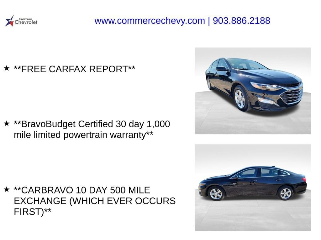 Backed by a BravoBudget Certified 30-day, 1,000-mile limited powertrain warranty and a CARBRAVO 10-day, 500-mile exchange policy, this Malibu is a smart choice for discerning buyers. Enjoy the peace of mind that comes with a free CARFAX report, ensuring you can make an informed decision.