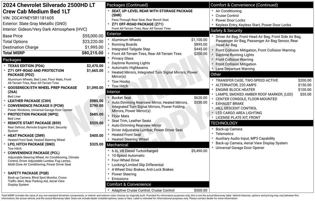 - Engine : Duramax 6.6L V-8 diesel direct injection, intercooled turbo, diesel, engine with 470HP