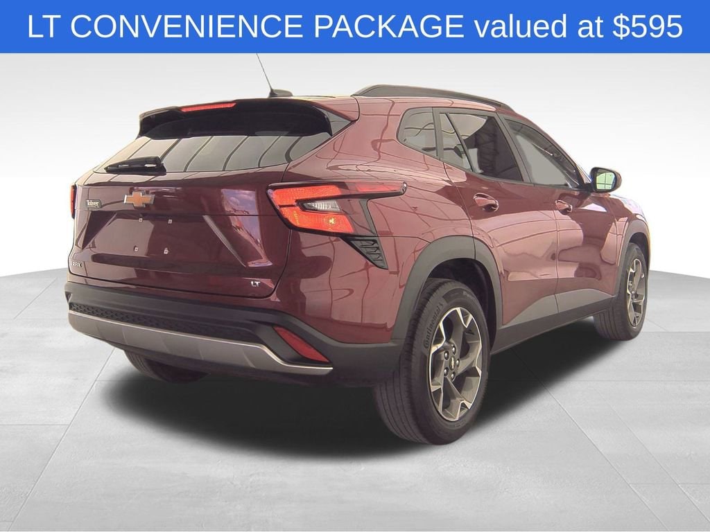 This 2024 Chevrolet Trax LT 1.2L Ecotec Turbo DOHC DI w/VVT 6-Speed Automatic FWD in Crimson Metallic comes with the following features: **FREE CARFAX REPORT** and **CARBRAVO 10 DAY 500 MILE EXCHANGE (WHICH EVER OCCURS FIRST)** Driver Confidence Package (Adaptive Cruise Control, Lane Change Alert w/Side Blind Zone Alert, Rear Cross-Traffic Alert, and Rear Park Assist), License Plate Front Mounting Package, LT Convenience Package (Heated Driver & Front Passenger Seats, Heated Power-Adjustable Outside Mirrors, Heated Steering Wheel, Keyless Open, and Wrapped Steering Wheel), and Preferred Equipment Group 1LT Driver Confidence Package (Adaptive Cruise Control, Lane Change Alert w/Side Blind Zone Alert, Rear Cross-Traffic Alert, and Rear Park Assist), License Plate Front Mounting Package, LT Convenience Package (Heated Driver & Front Passenger Seats, Heated Power-Adjustable Outside Mirrors, Heated Steering Wheel, Keyless Open, and Wrapped Steering Wheel), Preferred Equipment Group 1LT, 2-Way Adjustable Front Head Restraints, 3.50 Final Drive Axle Ratio, 4-Way Manual Front Passenger Seat Adjuster, 4-Wheel Disc Brakes, 6 Speakers, 6-Speaker Audio System Feature, 6-Way Manual Driver Seat Adjuster, ABS brakes, Air Conditioning, Alloy wheels, AM/FM radio: SiriusXM, Auto High-beam Headlights, Automatic temperature control, Brake assist, Bumpers: body-color, Cloth/Evotex Seat Trim, Compass, Delay-off headlights, Driver door bin, Driver vanity mirror, Dual front impact airbags, Dual front side impact airbags, Electronic Stability Control, Emergency communication system: OnStar and Chevrolet connected services capable, Exterior Parking Camera Rear, Front anti-roll bar, Front Bucket Seats, Front Center Armrest, Front reading lights, Front wheel independent suspension, Fully automatic headlights, Illuminated entry, Low tire pressure warning, Occupant sensing airbag, Outside temperature display, Overhead airbag, Overhead console, Panic alarm, Passenger door bin, Passenger vanity mirror, Power door mirrors, Power steering, Power windows, Premium audio system: Chevrolet Infotainment 3, Radio data system, Radio: Audio System w/AM/FM, Rear Park Assist (DISC), Rear window defroster, Rear window wiper, Remote keyless entry, Security system, SiriusXM, Speed control, Split folding rear seat, Spoiler, Steering wheel mounted audio controls, Tachometer, Telescoping steering wheel, Tilt steering wheel, Traction control, Trip computer, Variably intermittent wipers, and Wheels: 17 Gray-Painted Machined Aluminum.