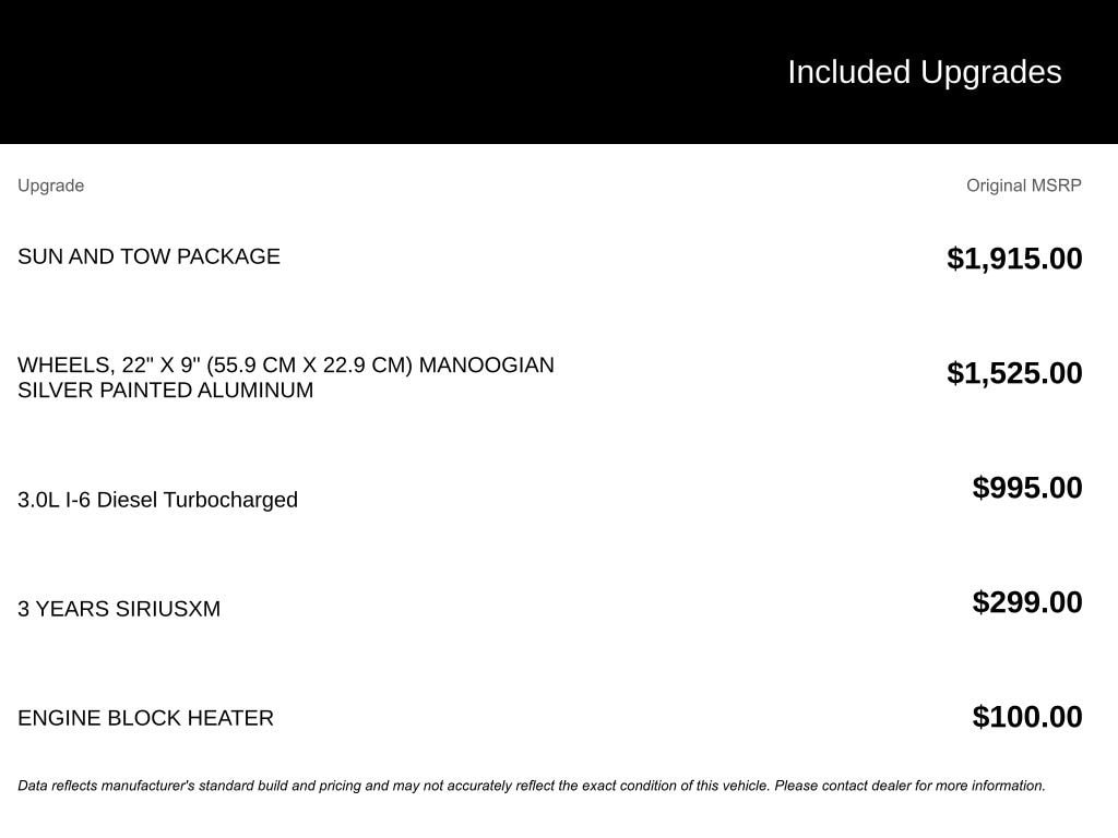 - Engine : Duramax 3L I-6 diesel direct injection, DOHC, variable valve control, intercooled turbo, diesel, engine with 305HP