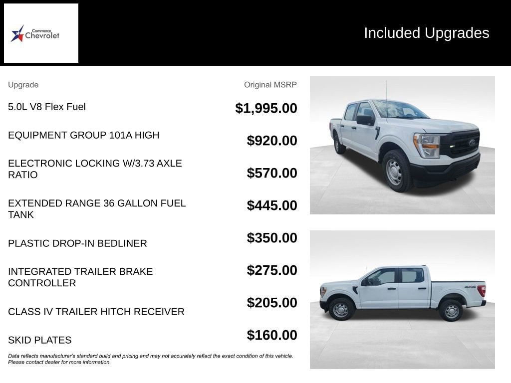 This F-150 XL is equipped with a host of features that enhance your driving experience and make it a true workhorse. The extended-range 36-gallon fuel tank ensures you can go the distance, while the integrated trailer brake controller and class IV trailer hitch receiver allow you to tow with ease. The skid plates protect vital components, and the electronic locking rear differential with 3.73 axle ratio provides superior traction and control.