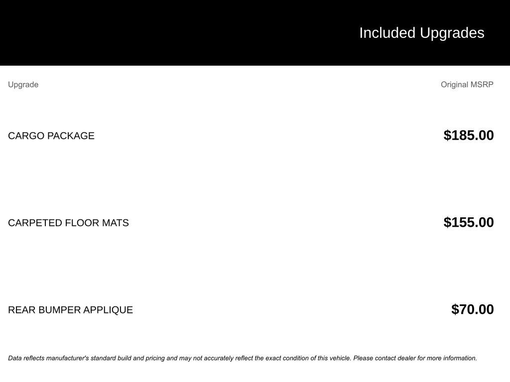 - Rear seatback upholstery : Carpet rear seatback upholstery
