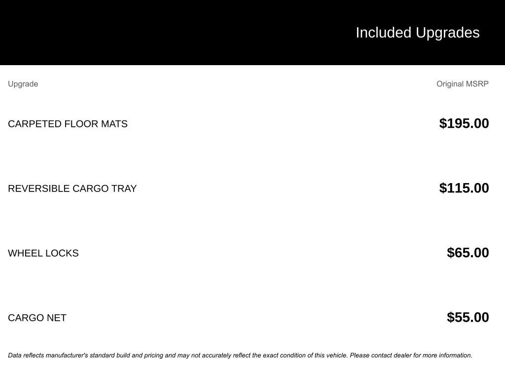 - Rear seatback upholstery : Carpet rear seatback upholstery