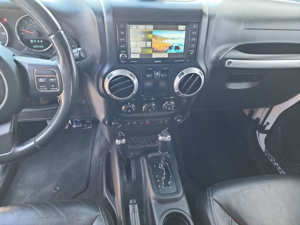 Inside, the Rubicon's spacious cabin provides ample room for passengers and cargo. The leather-trimmed heated front seats and automatic climate control ensure your comfort, while the Uconnect infotainment system with GPS navigation and 40GB hard drive keeps you connected and entertained.