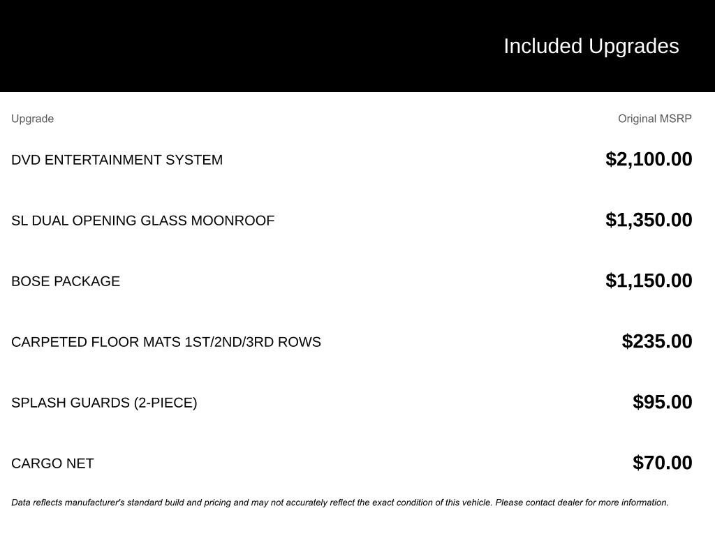 - Third-row seatback upholstery : Carpet third-row seatback upholstery