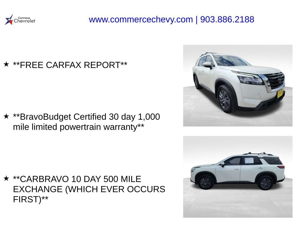 The 2022 Nissan Pathfinder SV is a versatile and well-equipped SUV that's ready to take on your daily adventures. With its spacious interior, advanced technology, and impressive performance, this Pathfinder is the perfect blend of capability and convenience.