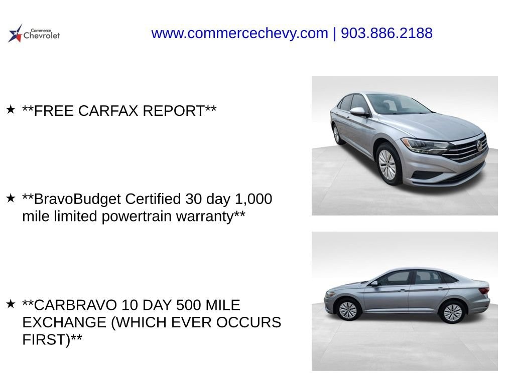 Discover the perfect balance of style, performance, and technology in this 2019 Volkswagen Jetta 1.4T S. With its sleek silver exterior and well-appointed interior, this Jetta is a true standout in its class. Boasting an impressive 1.4L turbocharged engine and an 8-speed automatic transmission, this Jetta delivers an exhilarating driving experience while still maintaining exceptional fuel efficiency, with an EPA-estimated 30 city/40 highway MPG.